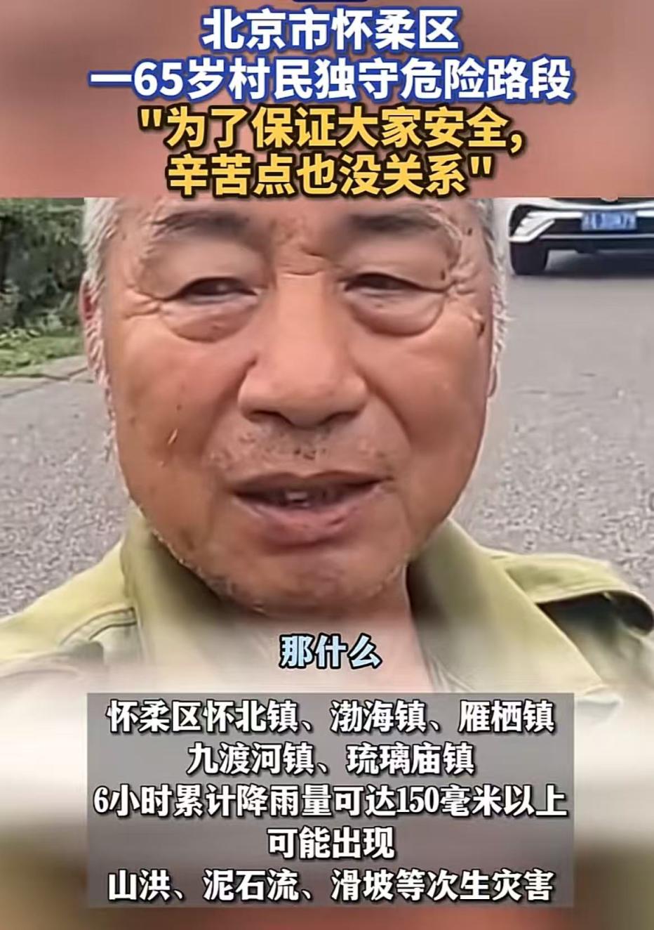 用私家车挡住通往危境的路,用东说念主声鸣响安全指示音,暴雨之中,刘大爷整宿苦守积水路口,着实作念到了盼愿合营。莫得谁条款,莫得谁规矩,只因为心中有善念,是以骄气自觉尽一份力。“为了安全,难题点也不广泛”,刘大爷的话朴实直白。