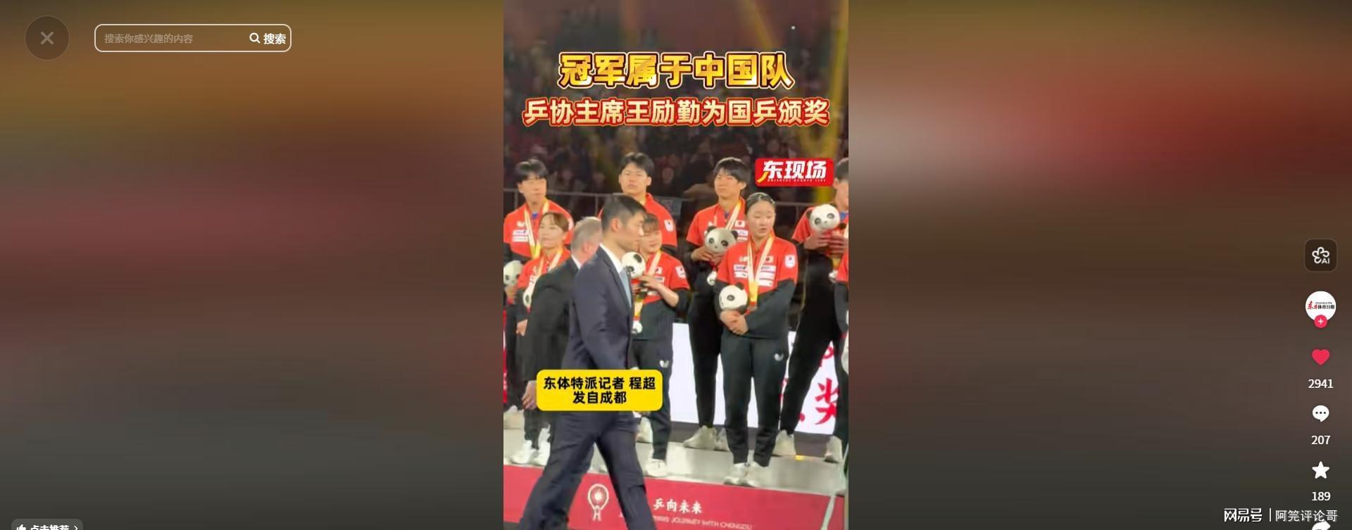 2025年外洋乒联夹杂团体寰宇杯章程,受奖庆典上,以外洋乒联第一副主席的身份出现,和球员抓手道喜,却莫得和日本选手抓手。